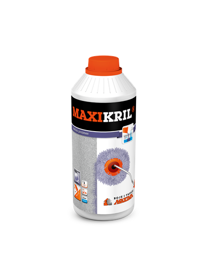 MAXIKRIL je akrilni premaz namijenjen za impregnaciju raznih podloga (cigle, betona, vlaknasto-cementnih podloga i sl.), a prije nanošenja disperzijskih boja i dekorativnih fasadnih žbuka. MAXIKRIL se lako nanosi, brzo suši i kvalitetno impregnira podlogu. Premazane površine su ujednačene, ravnomjerno se bojaju, manje upijaju, imaju poboljšanu adheziju završnih materijala i smanjuju njihovu potrošnju. Suhi premazni film je bezbojan. MAXIKRIL ne koristiti ako se za završne radove ugrađuju materijali na silikatnoj ili silikonskoj osnovi.