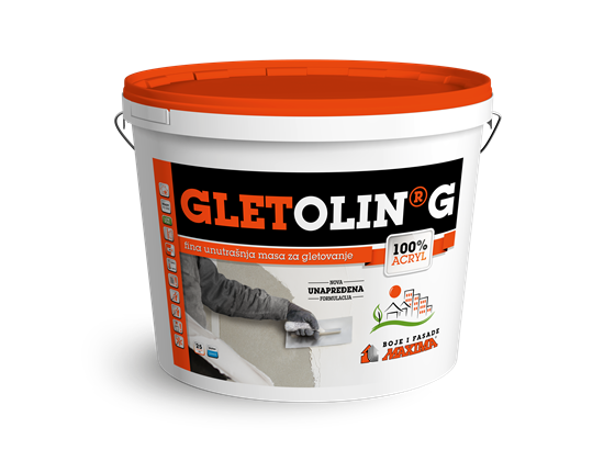 GLETOLIN G je pastozna masa na bazi akrilata, namijenjena za fino gletanje unutarnjih, čvrsto žbukanih zidnih površina, kao i gips kartonskih ploča. GLETOLIN G odlikuje izuzetna bjelina, lakoća nanošenja i obradivost.